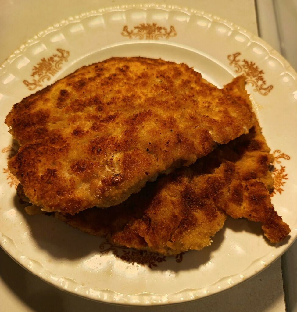 - Pyöräytä pihvi molemmin puolin ensin vehnäjauhoissa. Seuraavaksi kanamunassa ja viimeisenä korppujauhoissa. Anna leikkeiden kuivahtaa vartin verran ennen paistamista, jotta panerointi kiinnittyy lihaan.