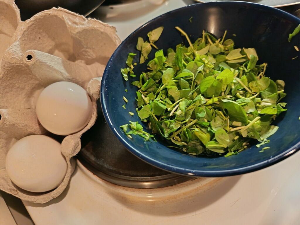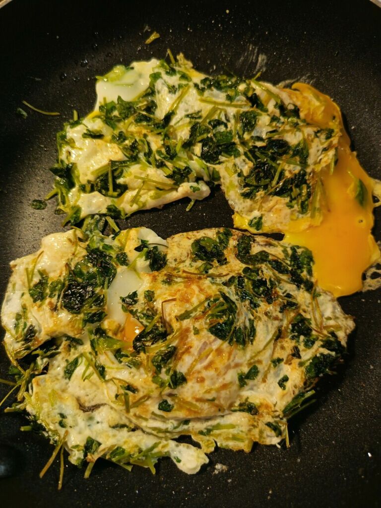 Eilisiseltä jäi tähteeks vähän silputtuja herneenversoja ja persiljaa, niin kokeilin nyt tämmösiä ja hyvää oli leivän päällä.