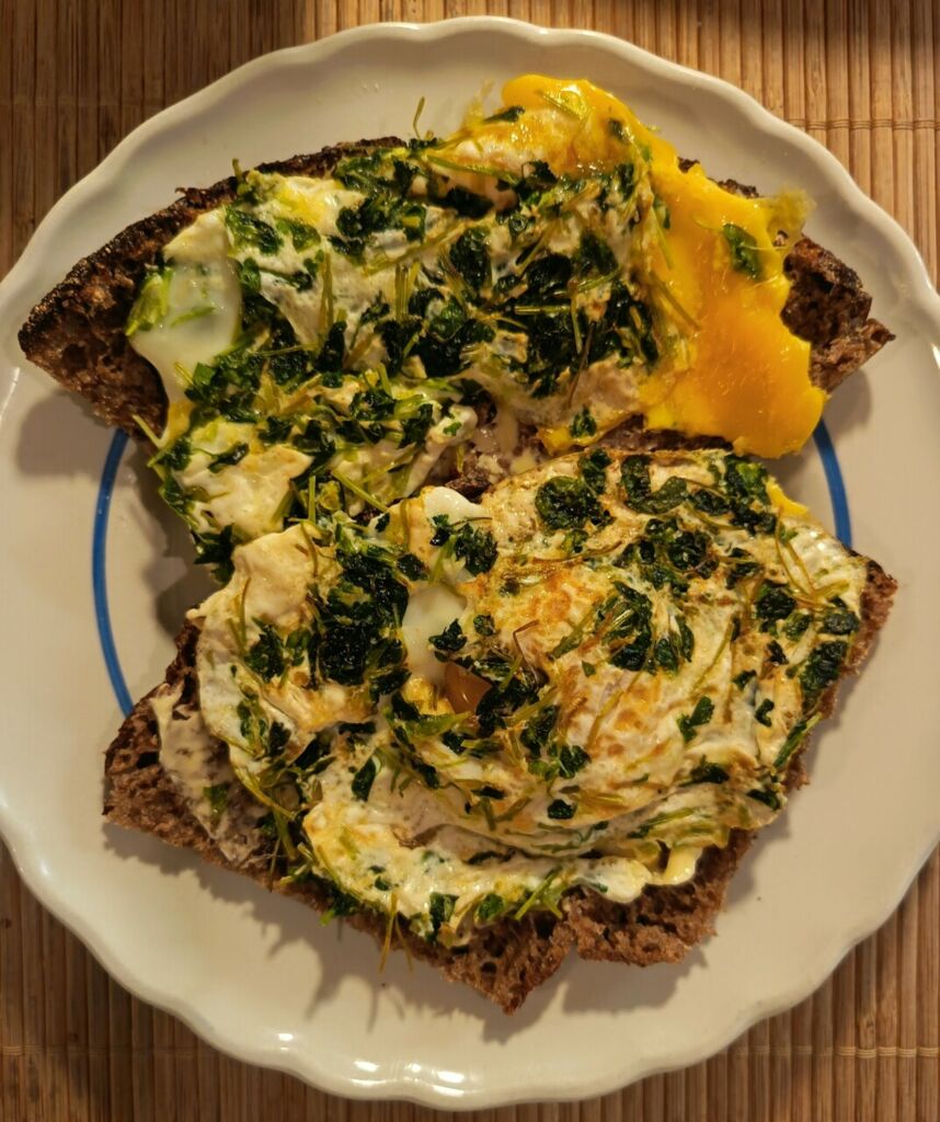 - Riko munat versojen päälle. Älä paista kauan, jos haluat mehevän keltuaisen. Kääntäminen onkin sitten haastavampi juttu. Toivottavasti onnistut paremmin, kuin minä.