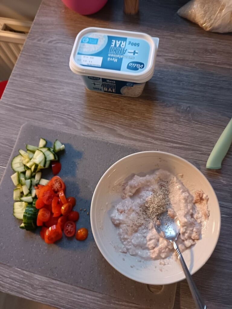 Lisä proteiiniksi aivan ihanaa raejuustoa.